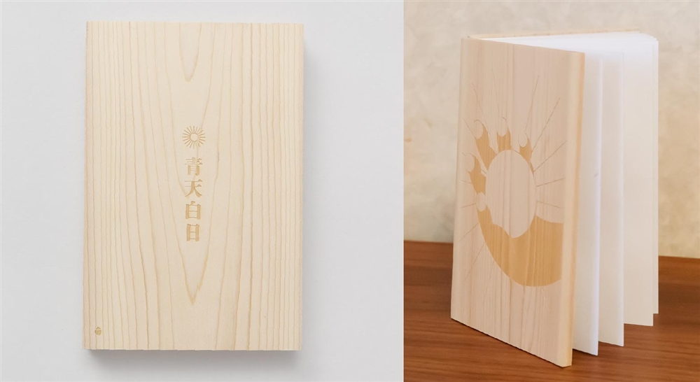 檜(ひのき)の香りが落ち着くあたたかい素材の、天照大御神(あまてらすおおみかみ)、月読命(つくよみのみこと)、須佐乃男命(すさのおのみこと)をそれぞれイメージしたデザインの御朱印帳。背面には自然の恵みを感じる四字熟語が彫られています。