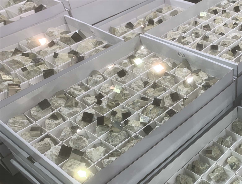 その母岩付きのキューブパイライトを買い付けたのが、スペインの業者のブースだったのですが、今回そこで心に残るやりとりがありました。